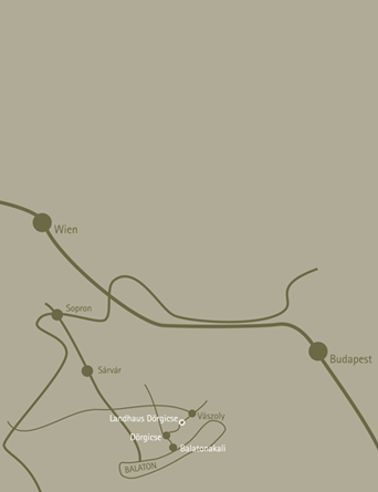 A92 Deggendorf, Richtung Passau, vorbei an Linz, vor Wien: Richtung Graz (Südautobahn), Richtung Eisenstadt (H), bei Sopron über die Grenze, B84 Richtung Balaton, am Balaton links Richtung Akali. Dann siehe Skizze.